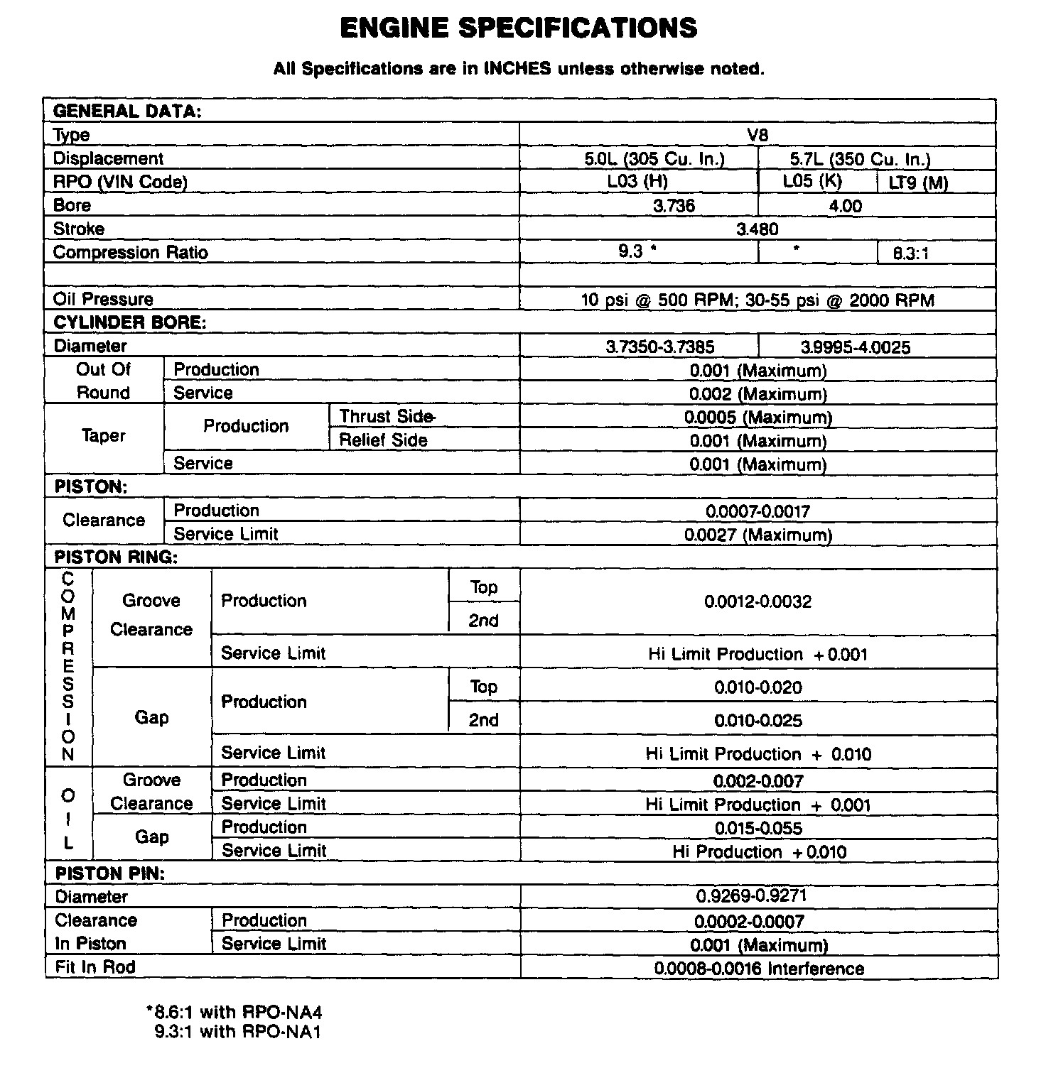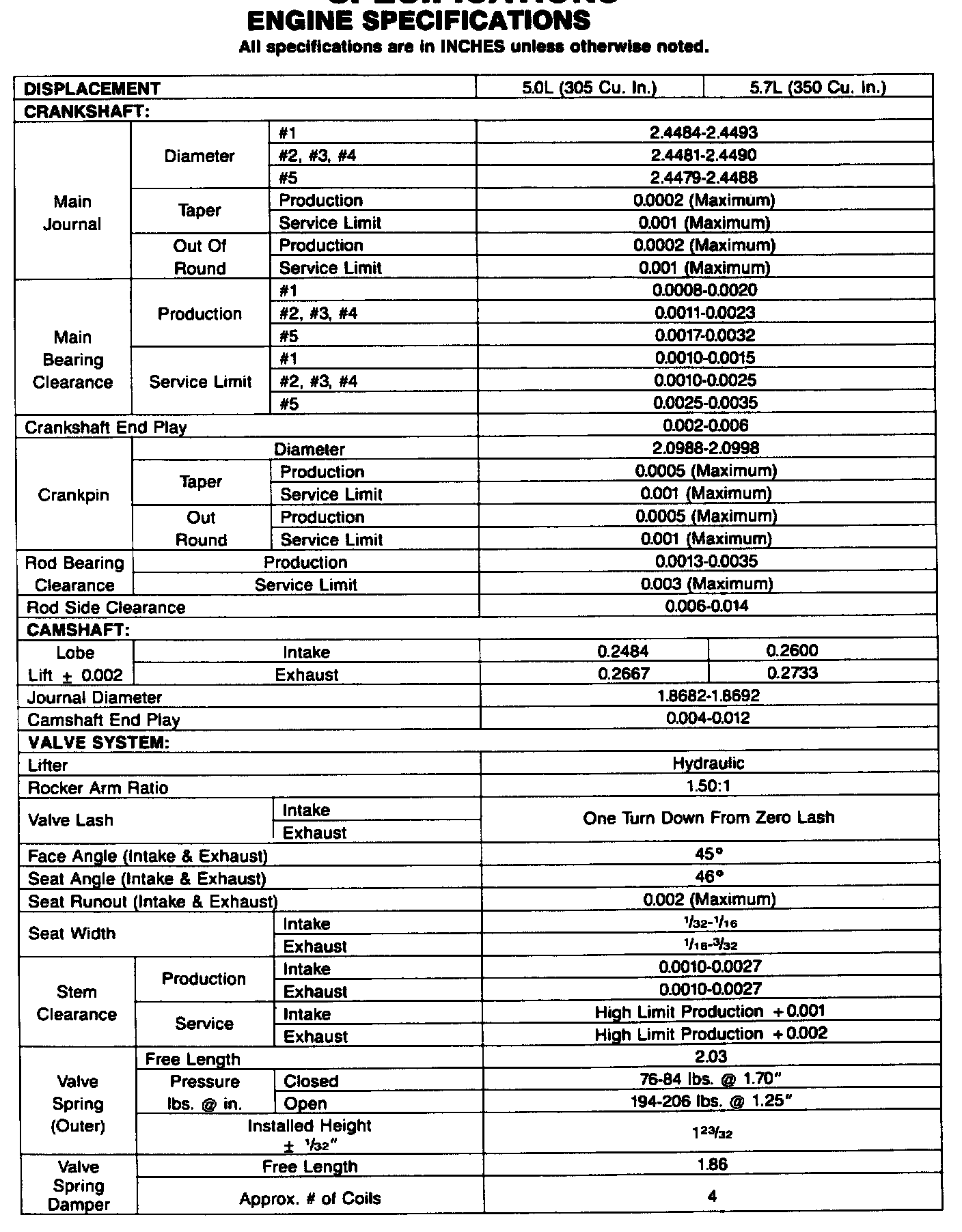 Engine Specifications: