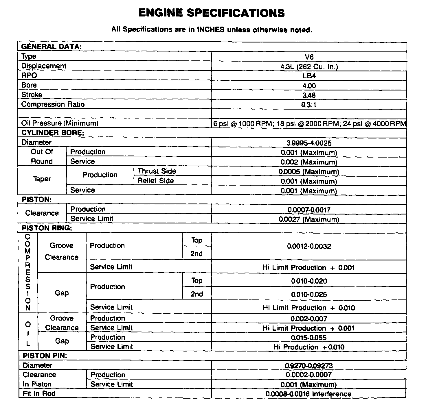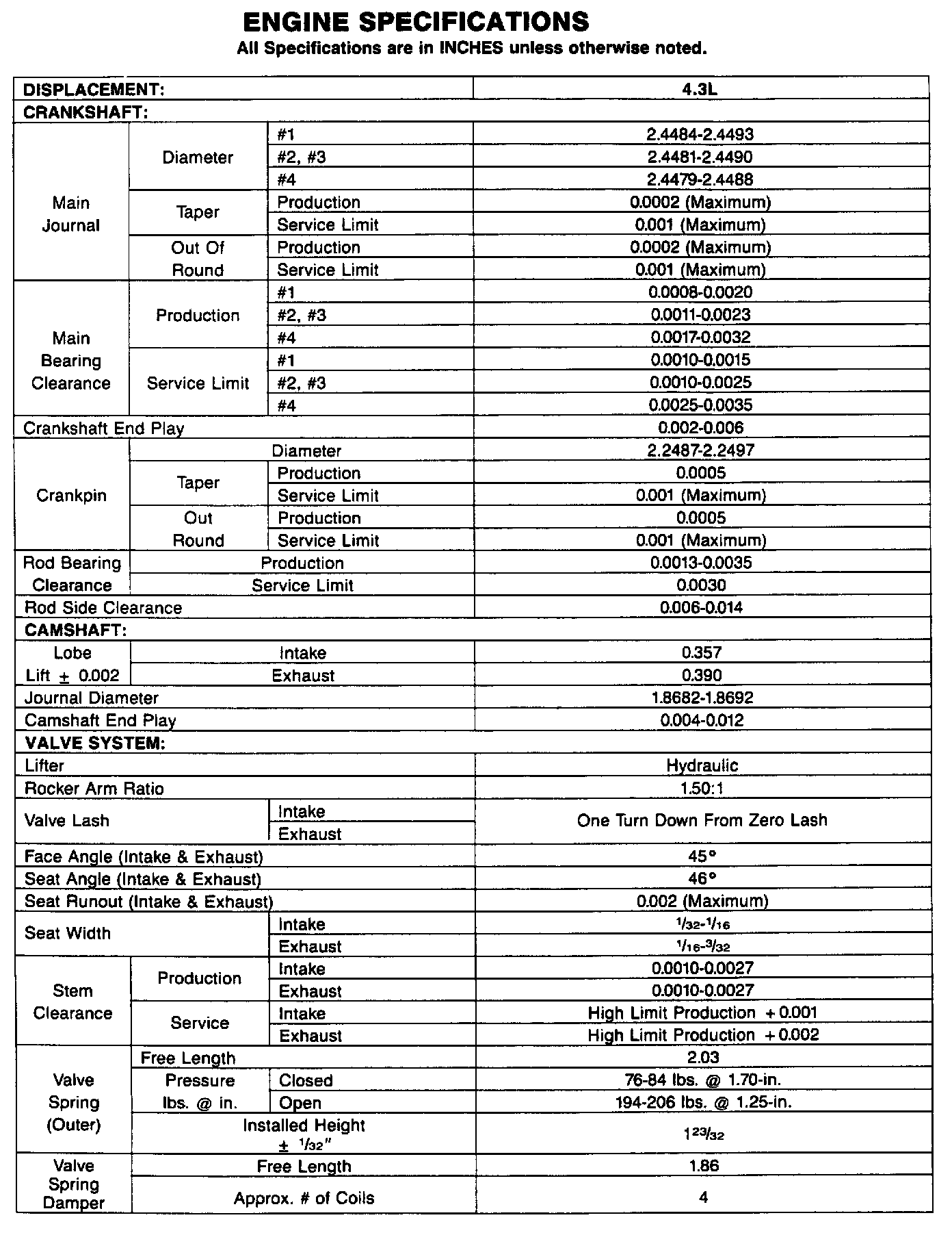 Engine Specifications: