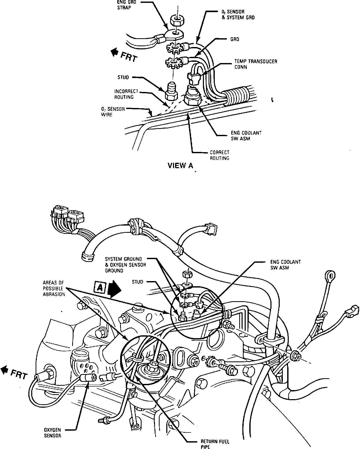 Correction: Any time that a problem with the oxygen sensor is suspect, the wiring harness should be inspected for any signs of abrasion. If any evidence of abrasion is found, the wiring should be repaired and secured to the fuel return line in such a way that the abrasion can no longer occur.