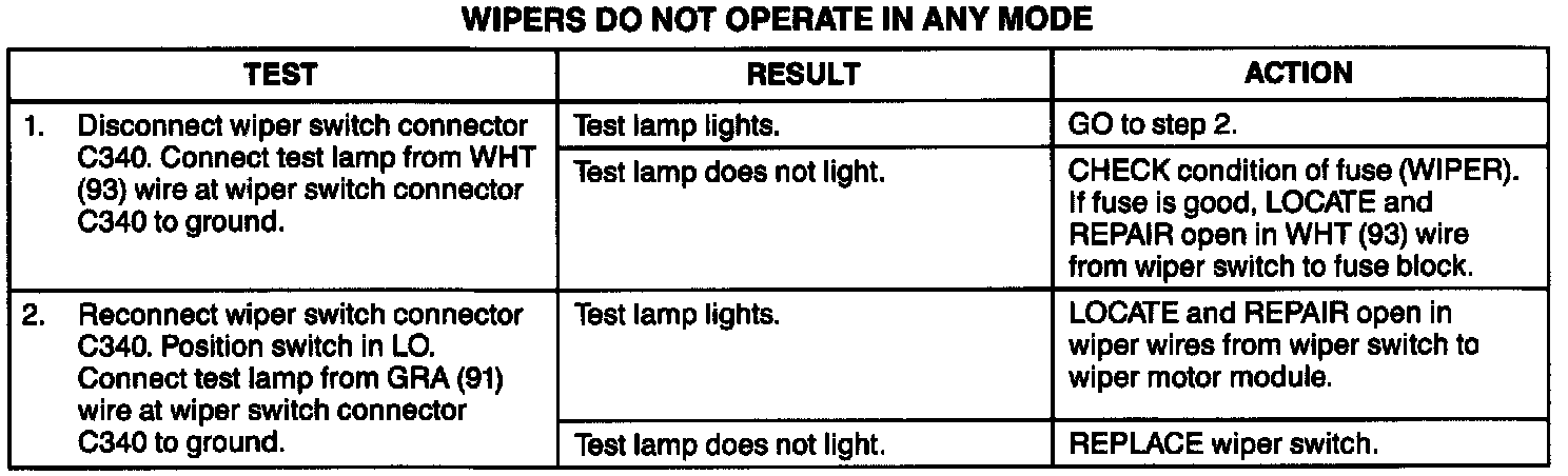 Wipers Do Not Operate In Any Mode