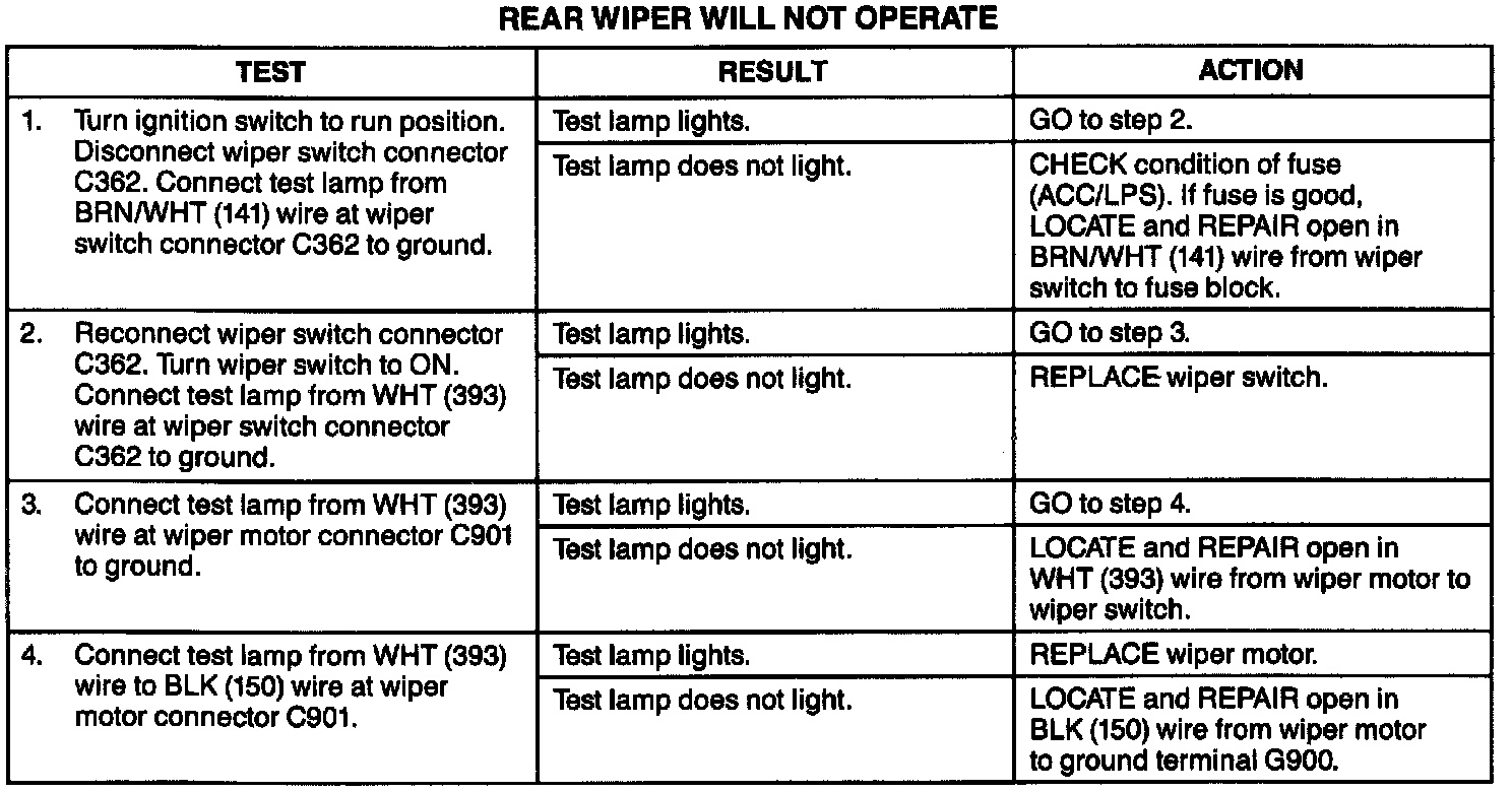 Rear Wiper Does Not Operate In Any Mode