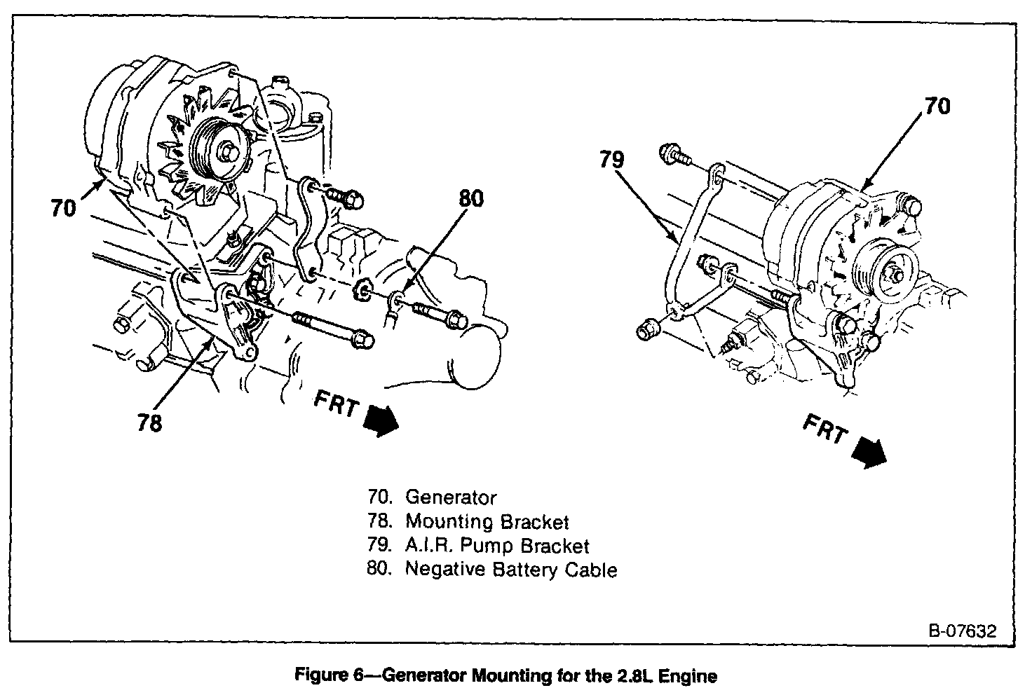 1. Generator to the mounting bracket with two bolts.
