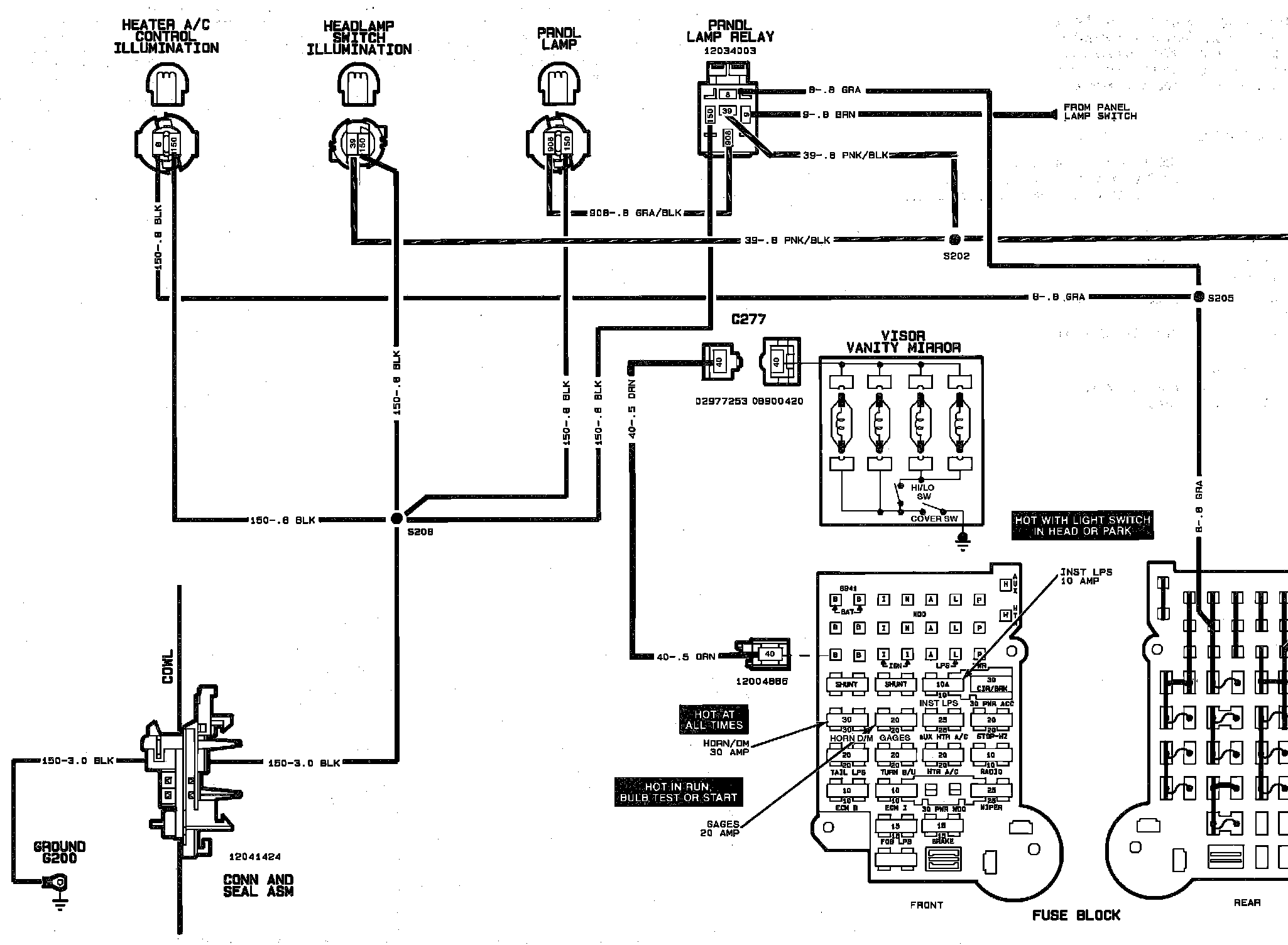 v�>Instrument Panel Illumination & Vanity Mirror Wiring Circuit: