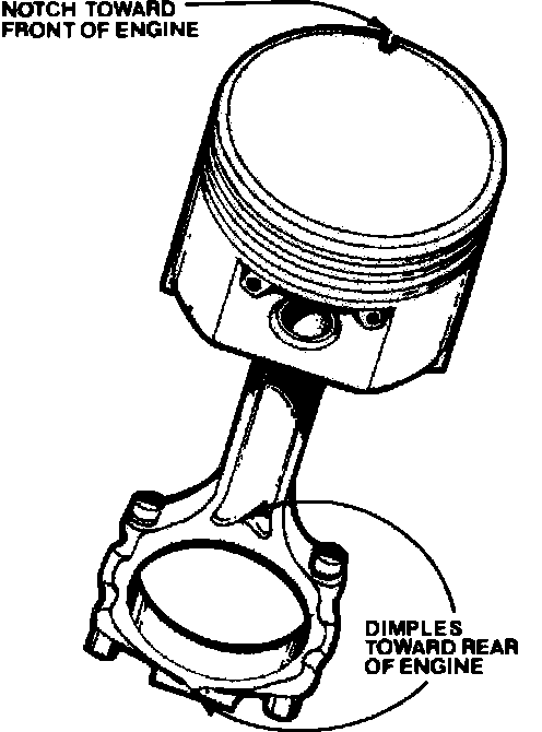 to rod with notch on piston facing toward front of engine and the raised dimples on the side of rod and rod cap facing toward rear of engine,