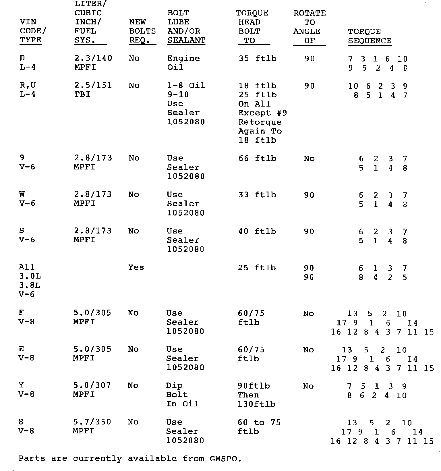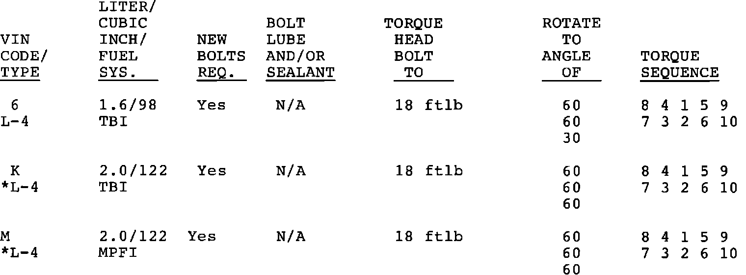This bulletin cancels and replaces bulletin 88-6-82 issued 11/88. This bulletin is being revised to add an additional torque sequence to VIN Codes K and M and to add 1989 model year.