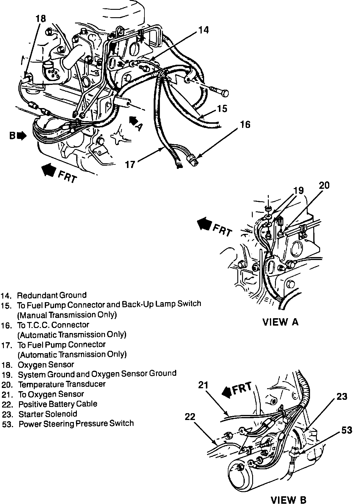 17 = TO FUEL PUMP CONNECTOR (AUTOMATIC TRANSMISSION ONLY).