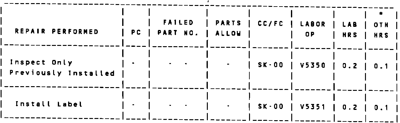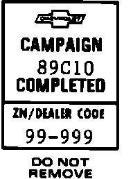 Each vehicle corrected in accordance with the instructions outlined in this Product Campaign Bulletin will require a "Campaign Identification Label." Each label provides a space to include the five (5) digit dealer code of the dealer performing the campaign service. This information may be inserted with a typewriter or a ball point pen.