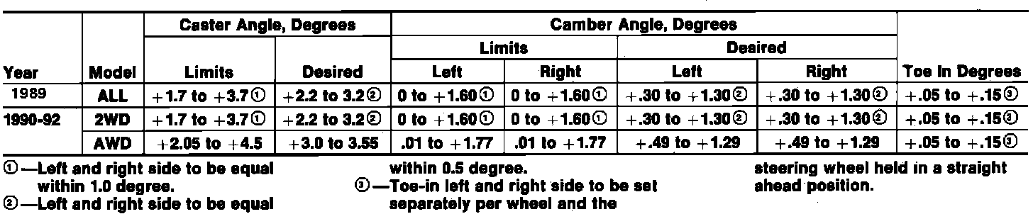 Front Wheel Alignment Specifications: