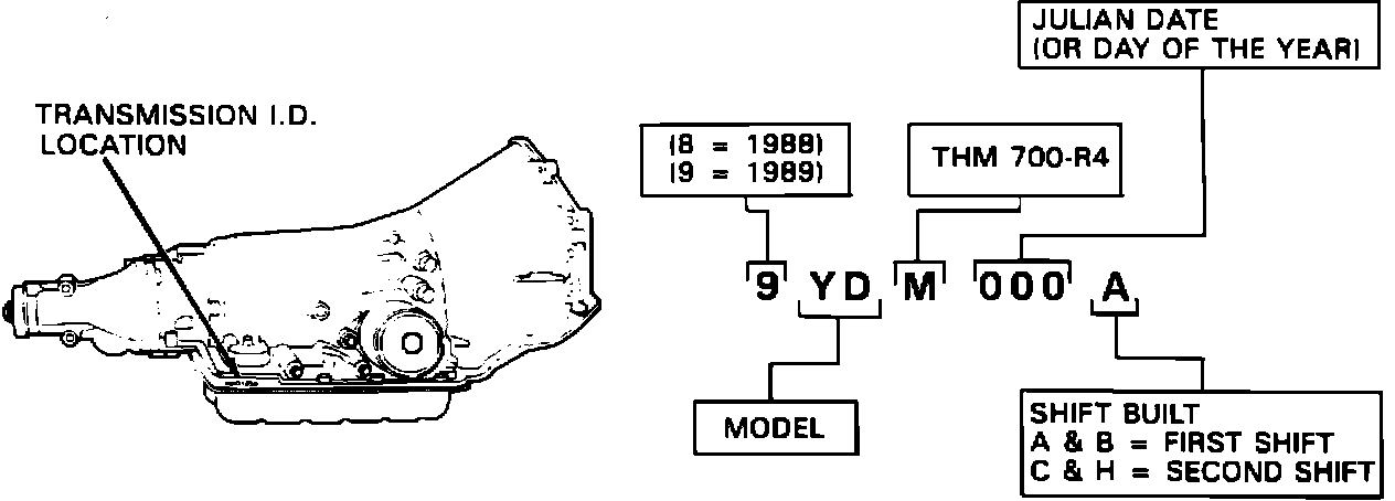 FIGURE 1 - THM 700-R4 TRANSMISSION IDENTIFICATION INFORMATION: