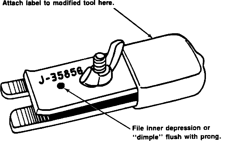 The removal of the "dimple" is all that is necessary to modify the tool. The attached label should be applied to any modified J-35856.