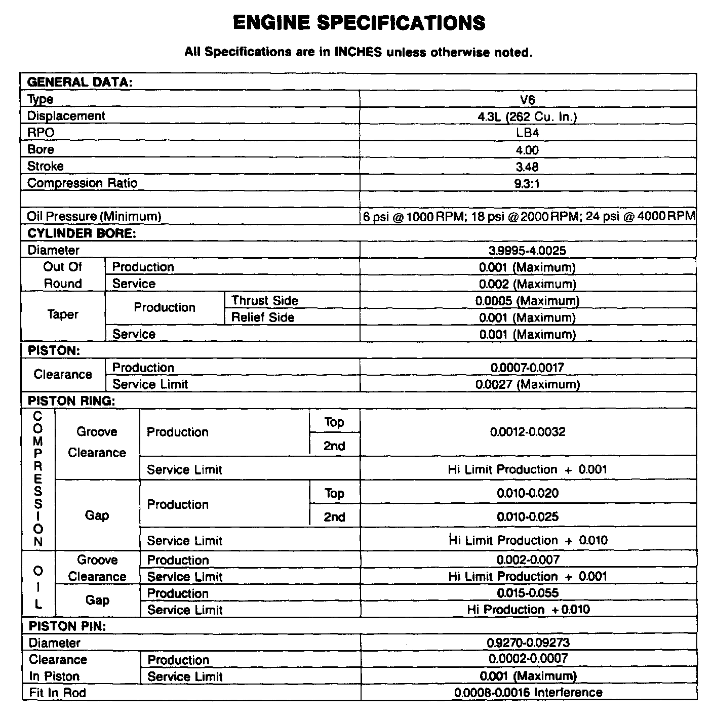 Engine Specifications: