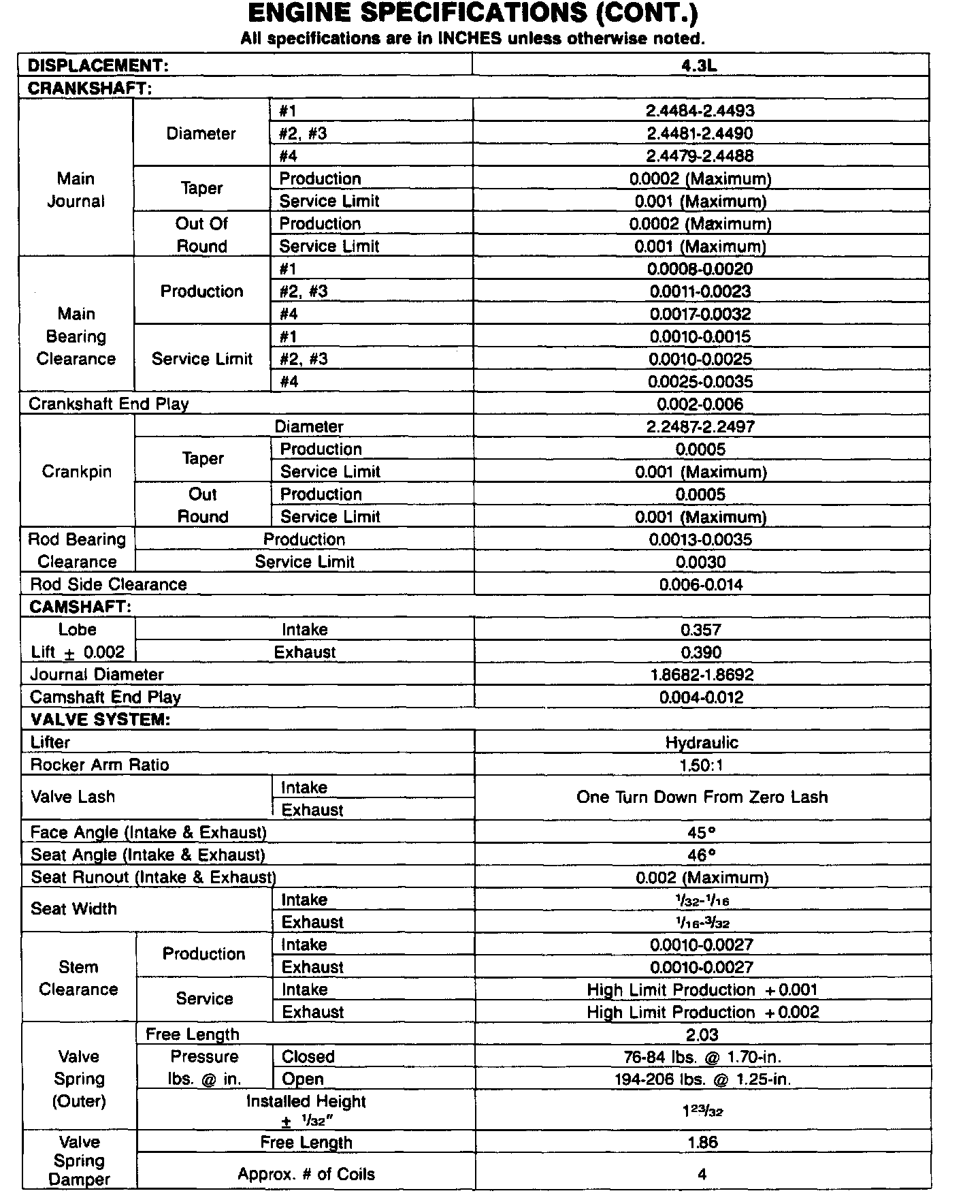 Continued Engine Specifications: