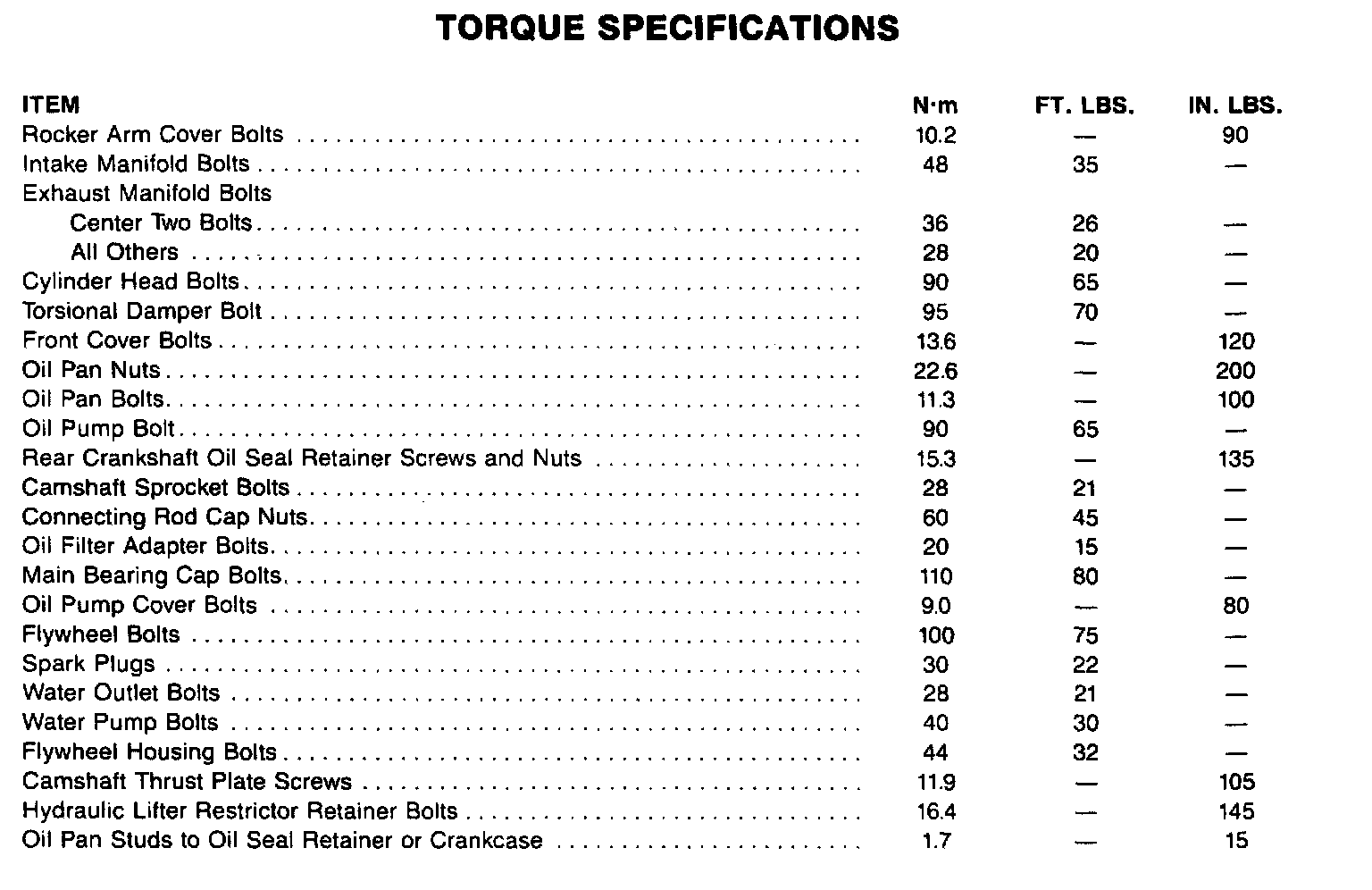 Torque Specifications: