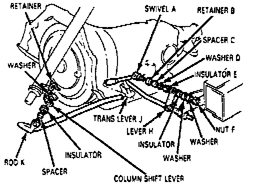 3. Attach rod (K) to column shift lever.