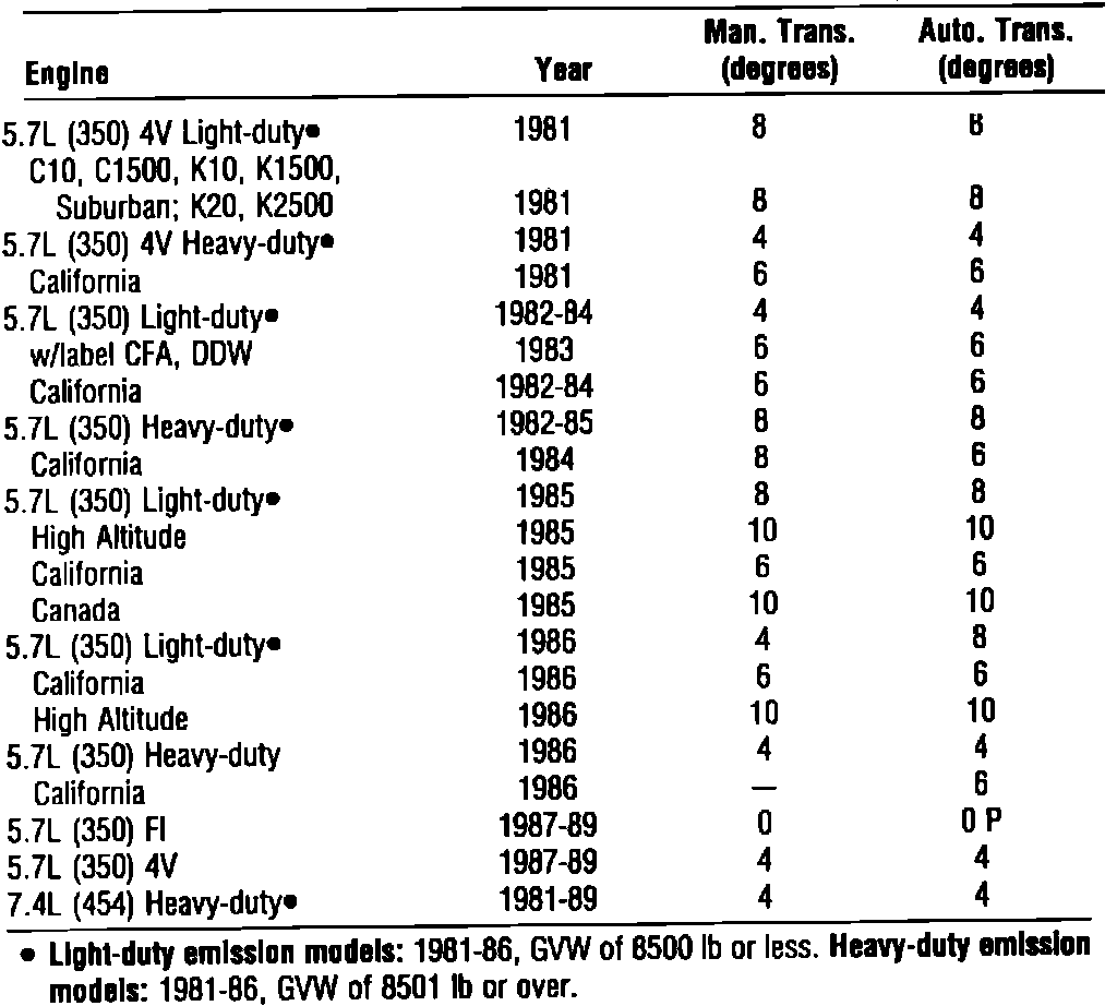 Ignition Timing: Specifications