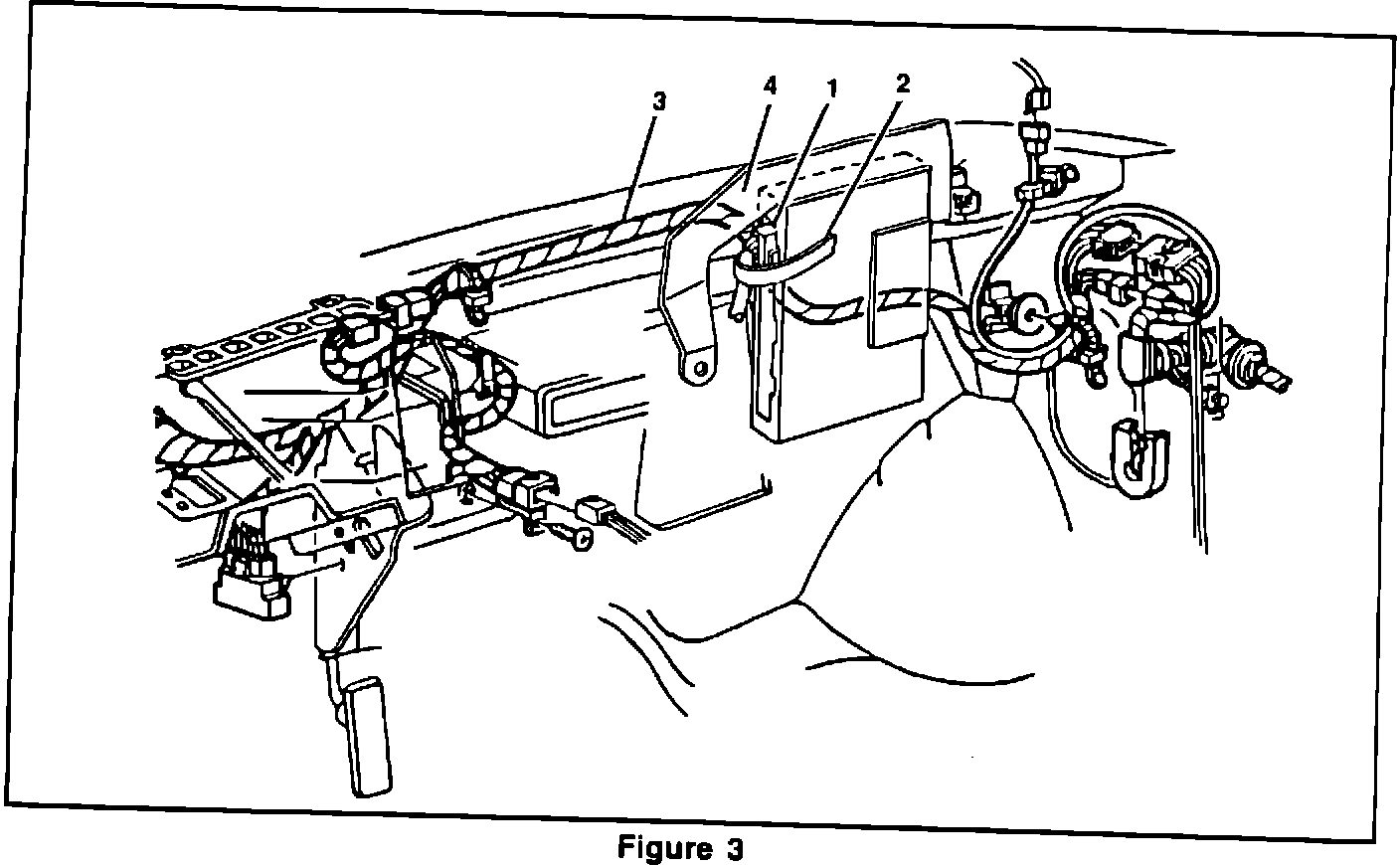 To avoid interference, it will be necessary to move the cross body power door lock harness as shown prior to ECM installation (see Item 3 Figure 3).
