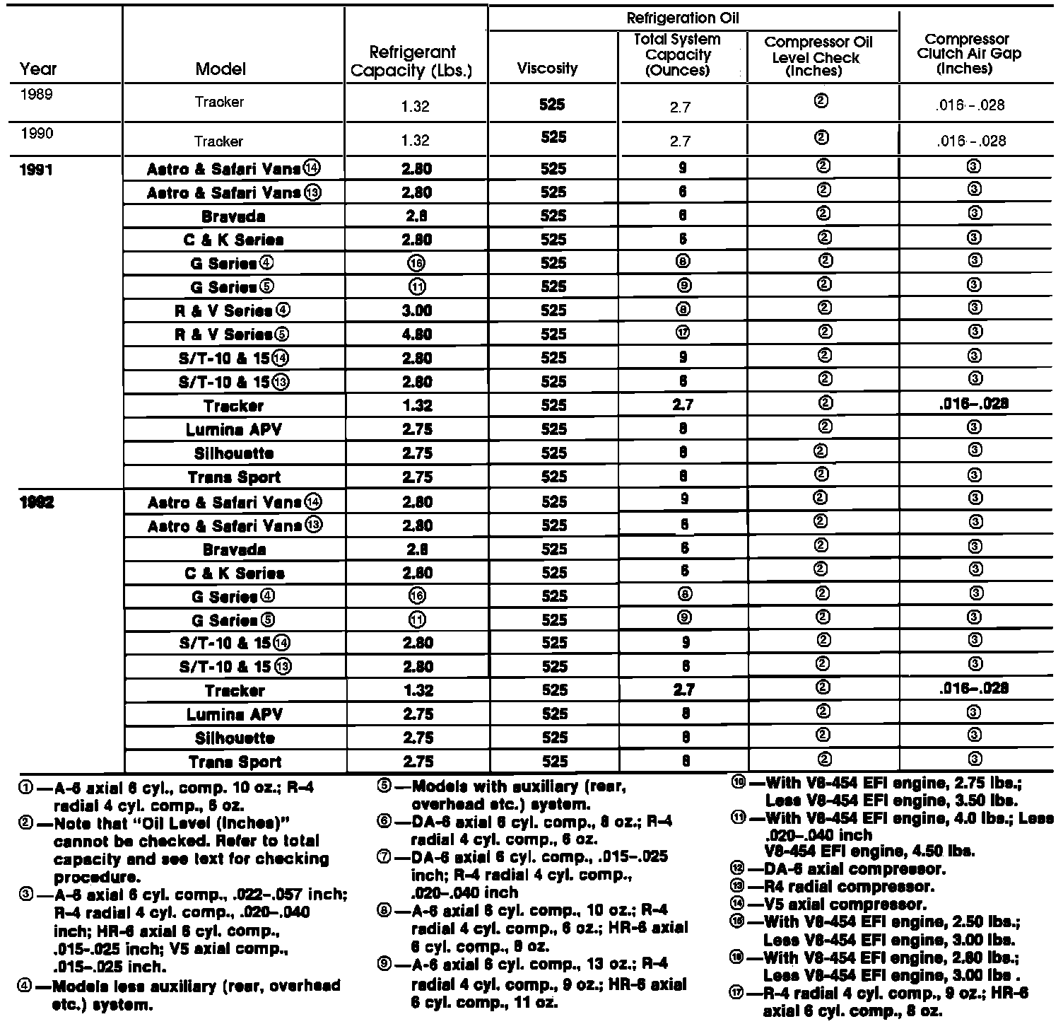 A/C Data Table: