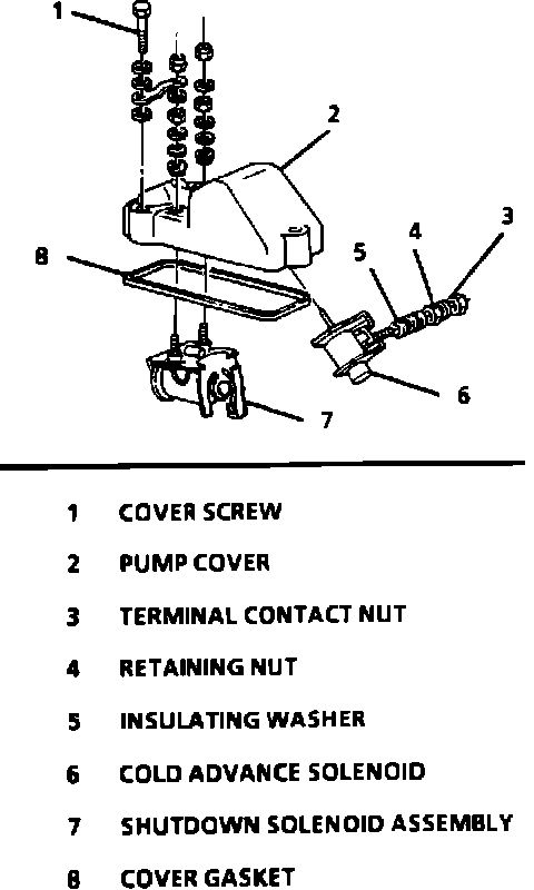 The cold advance solenoid is mounted under the injection pump cover.