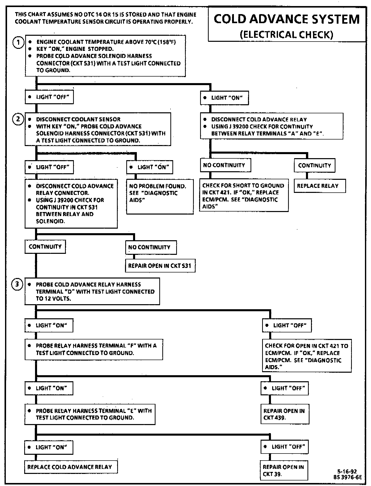 3. This step will determine if all factors are available for the cold advance relay to operate.