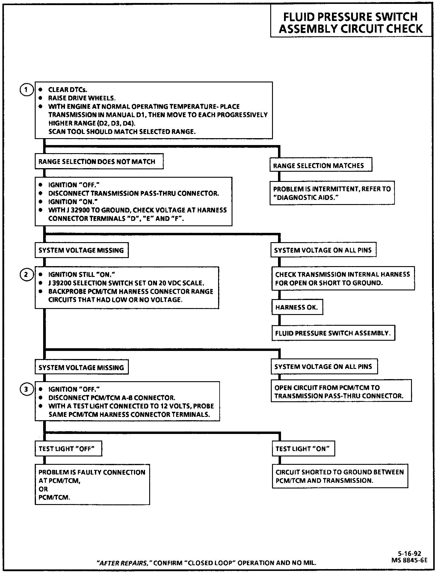 1. This test checks the indicated fluid pressure switch assembly to the manual valve position actually selected.