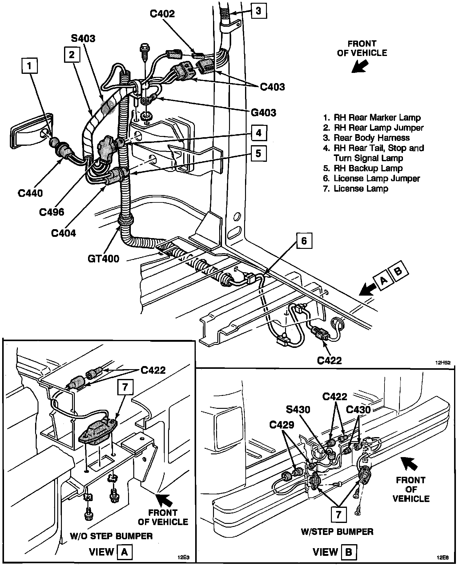 Right Hand Rear Lamps And Wiring - Passenger And Panel Van: