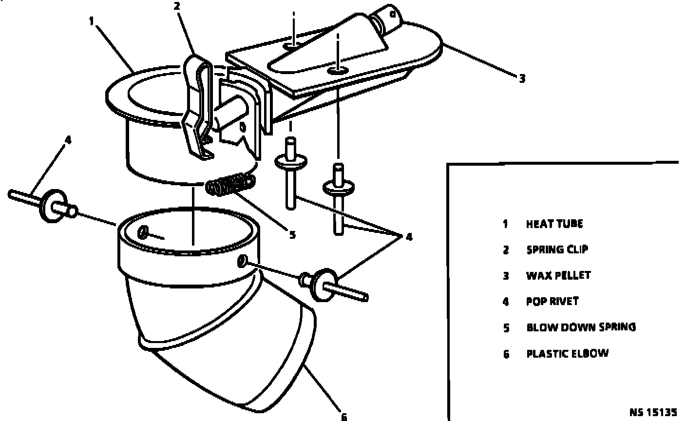 2. If application has a plastic heat tube elbow, use an 1/8" drill bit to drill out the two rivets that secure it to the heat tube and remove elbow. If application does NOT have an elbow, skip this step.