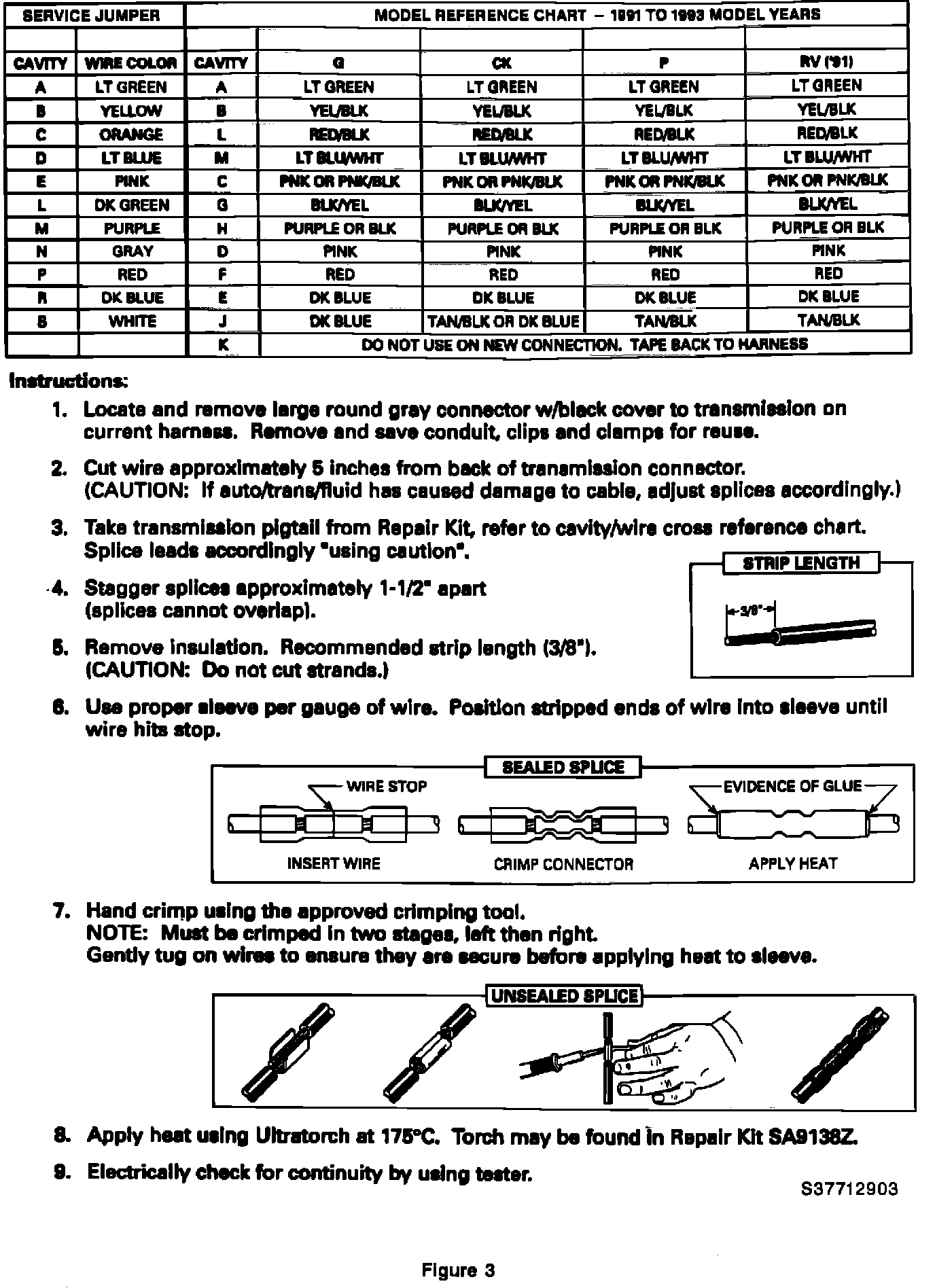 When installing a S.R.T.A. unit or replacing a wiring harness on an assembly built prior to May 5, 1993 (Julian Date 125), it will be necessary to install the service jumper harness included in the service package. Installation instructions are included in this bulletin and in the service package.