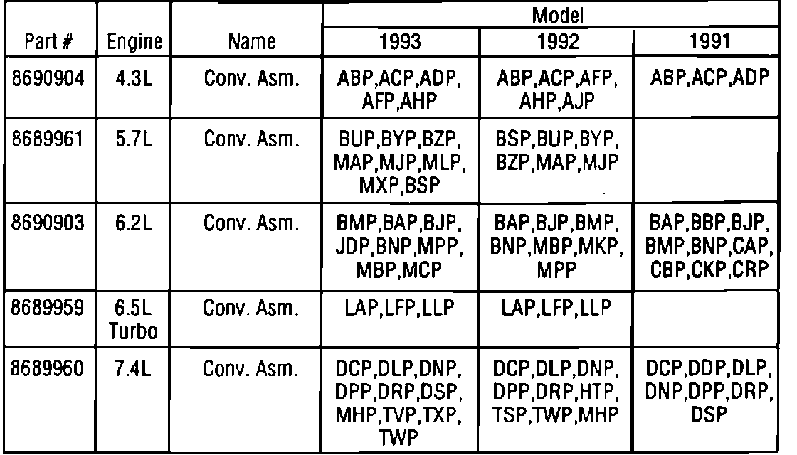 Starting January 11, 1993 (Julian Date 011) all 1993 C/K, G, and P Vehicles with 4L80-E/4L80-EHD models will have the new converter assembly.