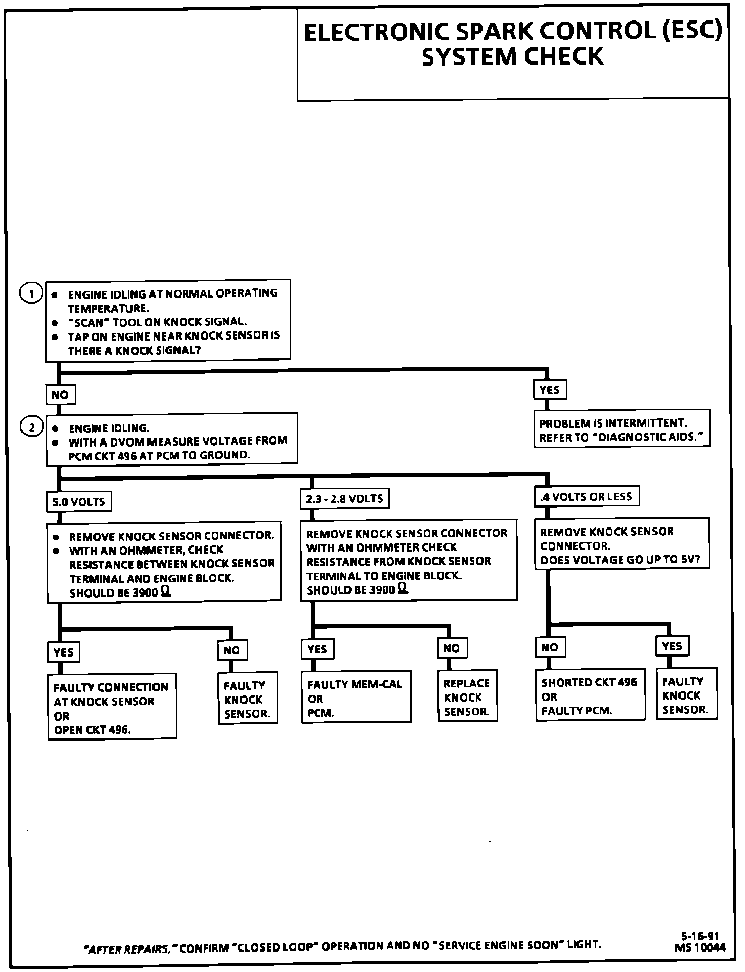 If the ESC system checks OK, but detonation is the complaint, refer to Detonation/Spark Knock/PingsDetonation/Spark Knock/Pings