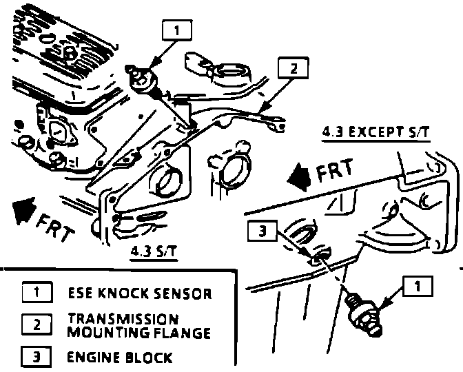 All gas engines are equipped with electronic spark control. A knock sensor is mounted on the engine block. It is connected by a blue wire to the ESC module mounted to a bracket on top of the engine. The sensor, in response to engine knock, sends a signal to the module and from there to the ECM/PCM, located in the passenger compartment. The ECM/PCM sends a signal to the distributor to retard spark timing.