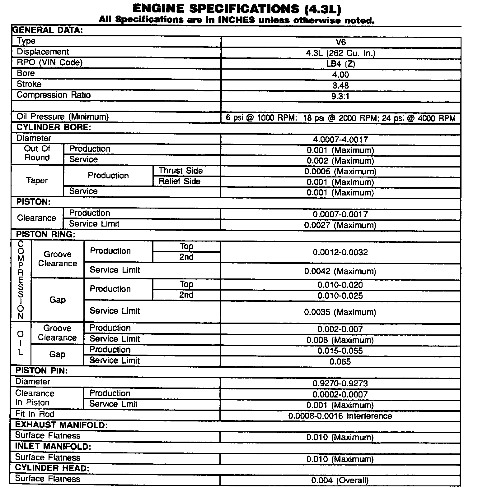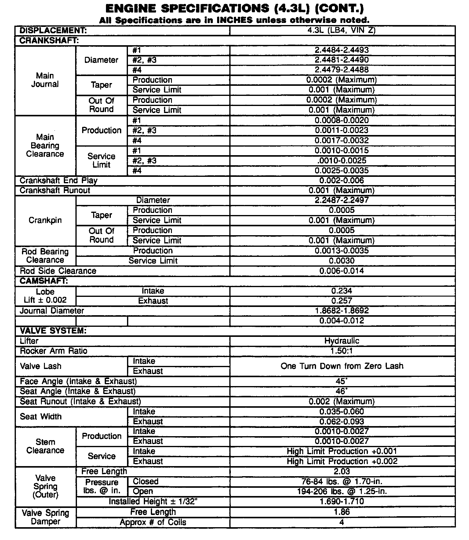 Continued Engine Specifications: