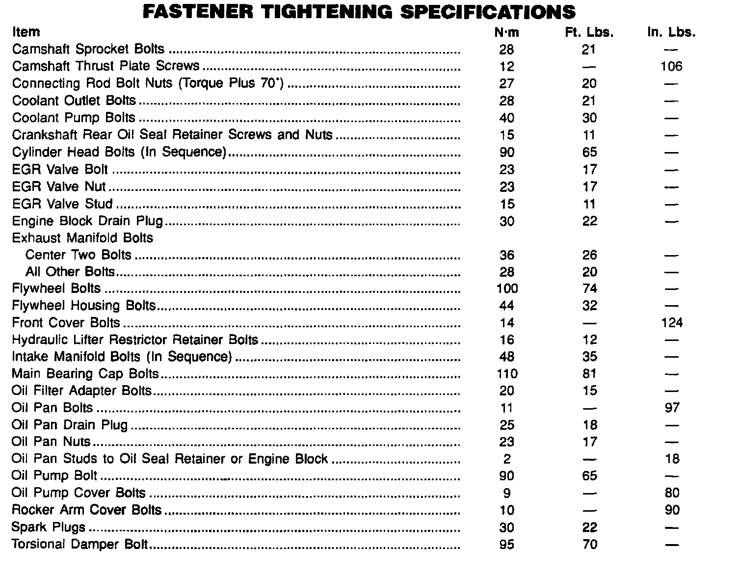 Torque Specifications: