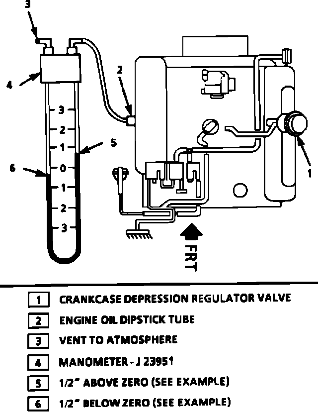 Connect one end of the manometer to the engine oil dipstick hole. The other end of the manometer is vented to atmosphere.