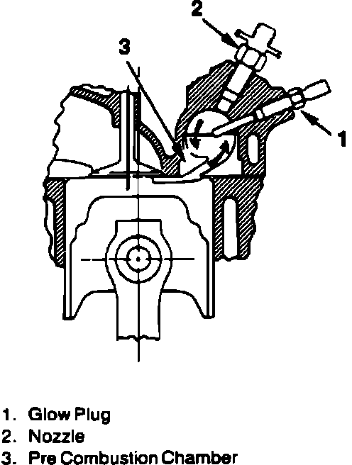 Glow plugs are located in the cylinder head and protrude into the precombustion chamber.
