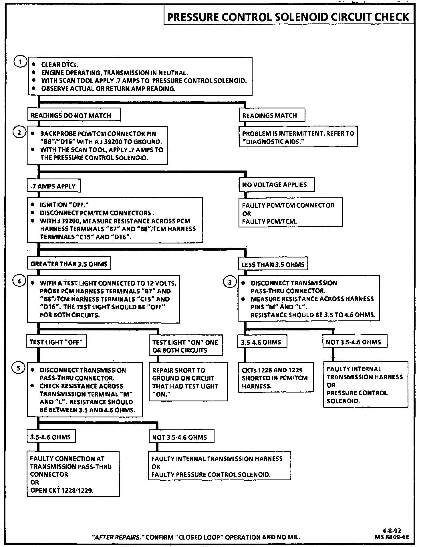 5. This test checks internal transmission harness and the pressure control solenoid for high resistance.