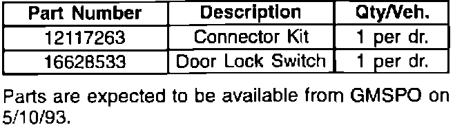This condition may be corrected by installing a new door lock switch P/N 16628533, and a terminal connector package 12117263, which is now available from GMSPO.