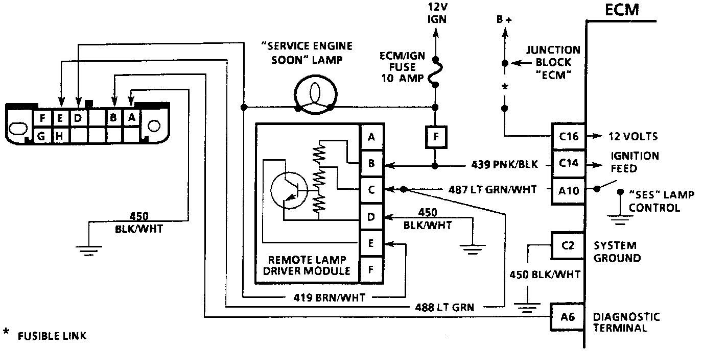 The control module provides the diagnostic logic to detect faults in the systems that the control module monitors or controls. The control module, when it recognizes a fault, has the capability of turning a "Service Engine Soon" (SES) light "ON" and storing a code. Furthermore, if the condition corrects itself, the "Service Engine Soon" signal will be turned "OFF immediately following the correction