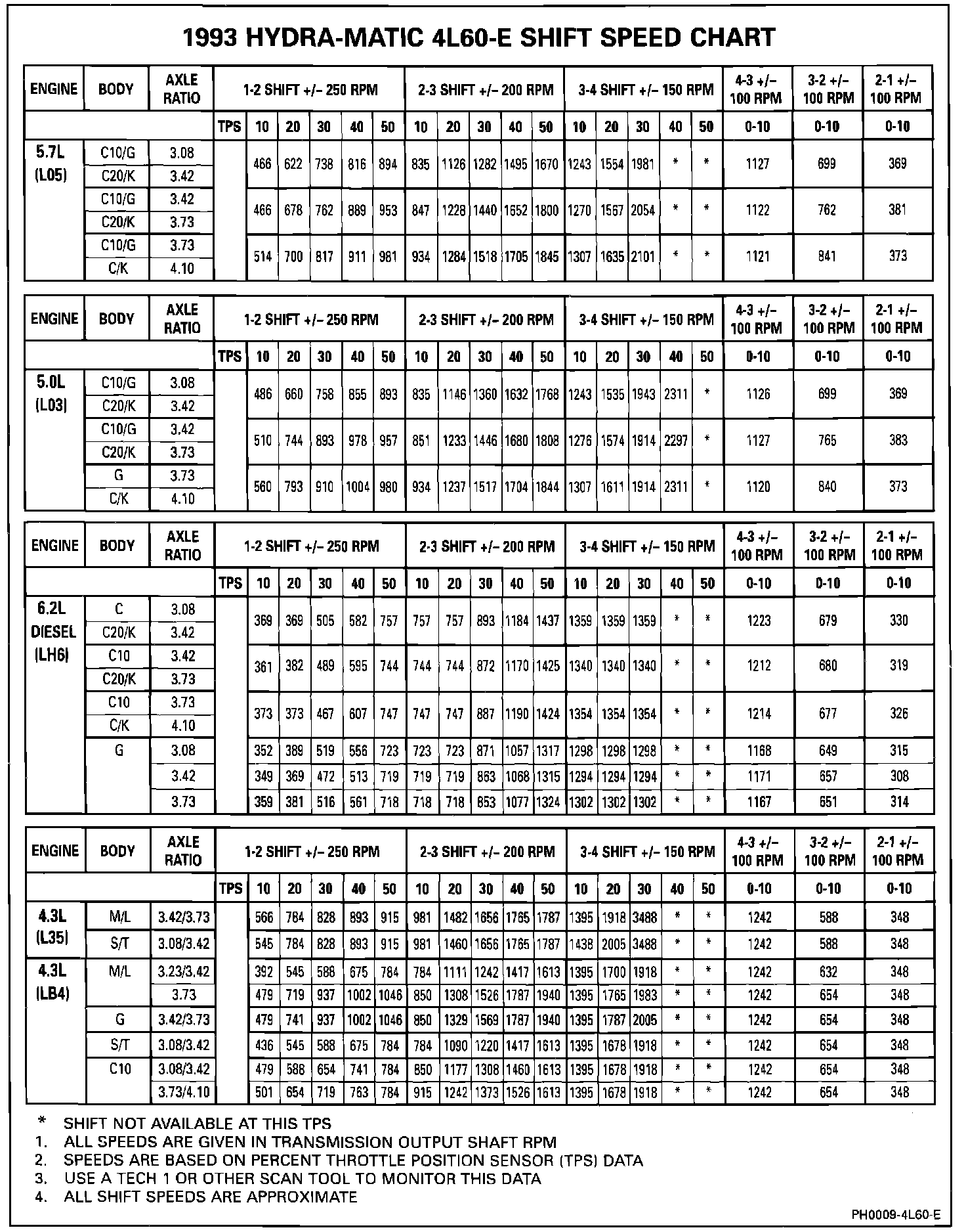 1993 Shift Speed Chart (All Engines & Bodies):