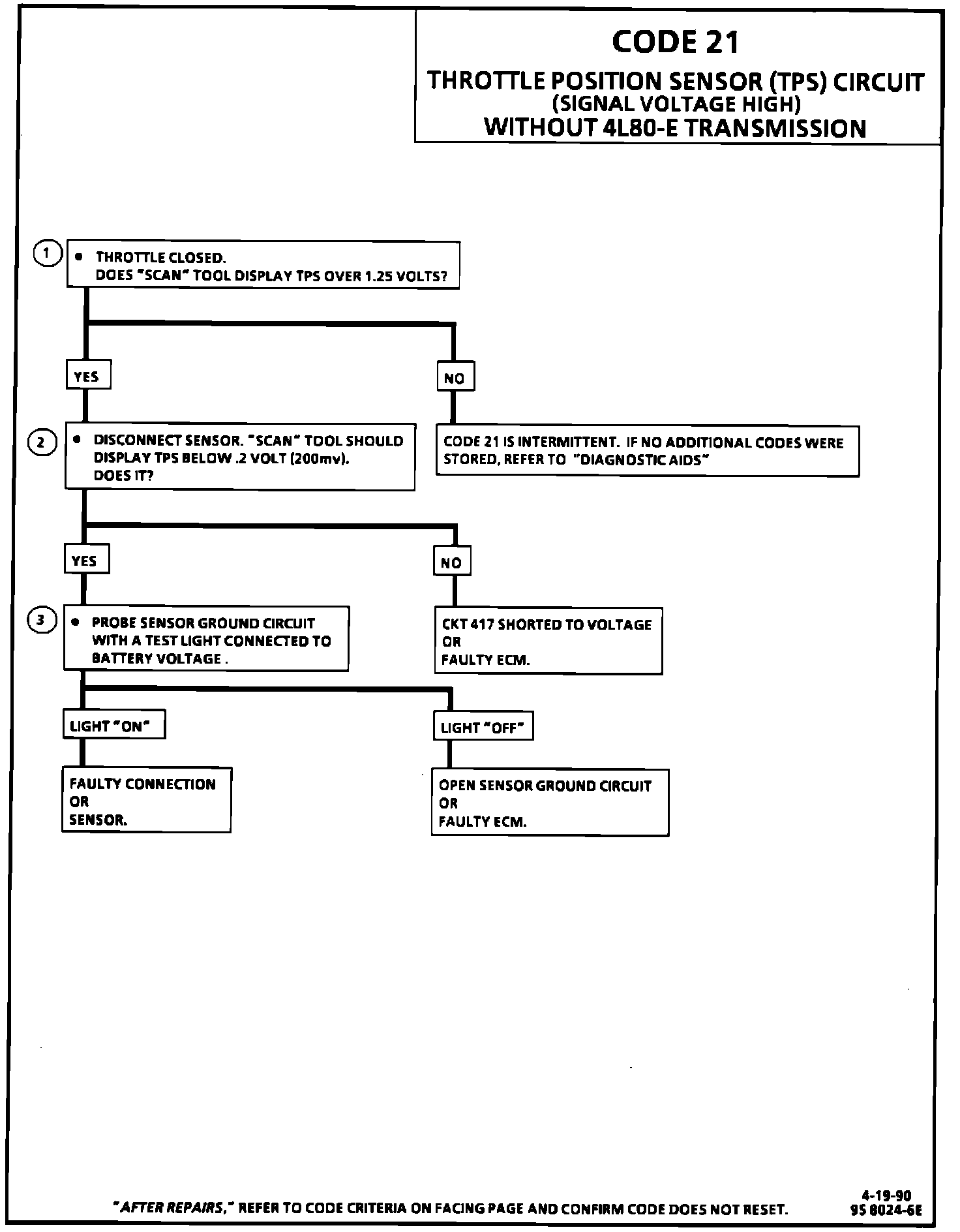 1. This step checks to see if Code 21 is the result of a hard failure or an intermittent condition. Code 21 will set if:
