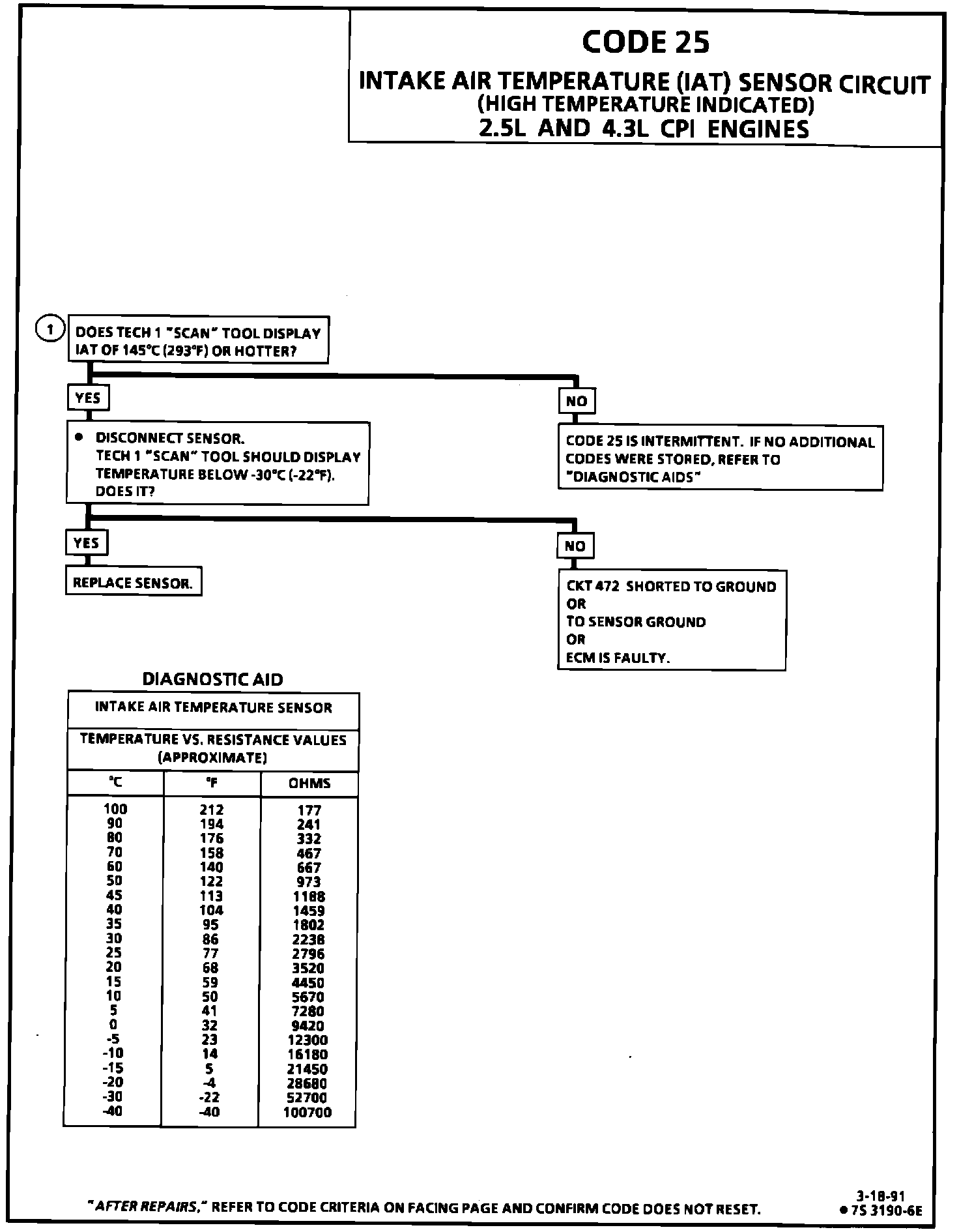 The "Temperature to Resistance Value" scale may be used to test the IAT sensor at various temperature levels to evaluate the possibility of a "skewed" (mis-scaled) sensor. A "skewed" sensor could result in poor driveability complaints.