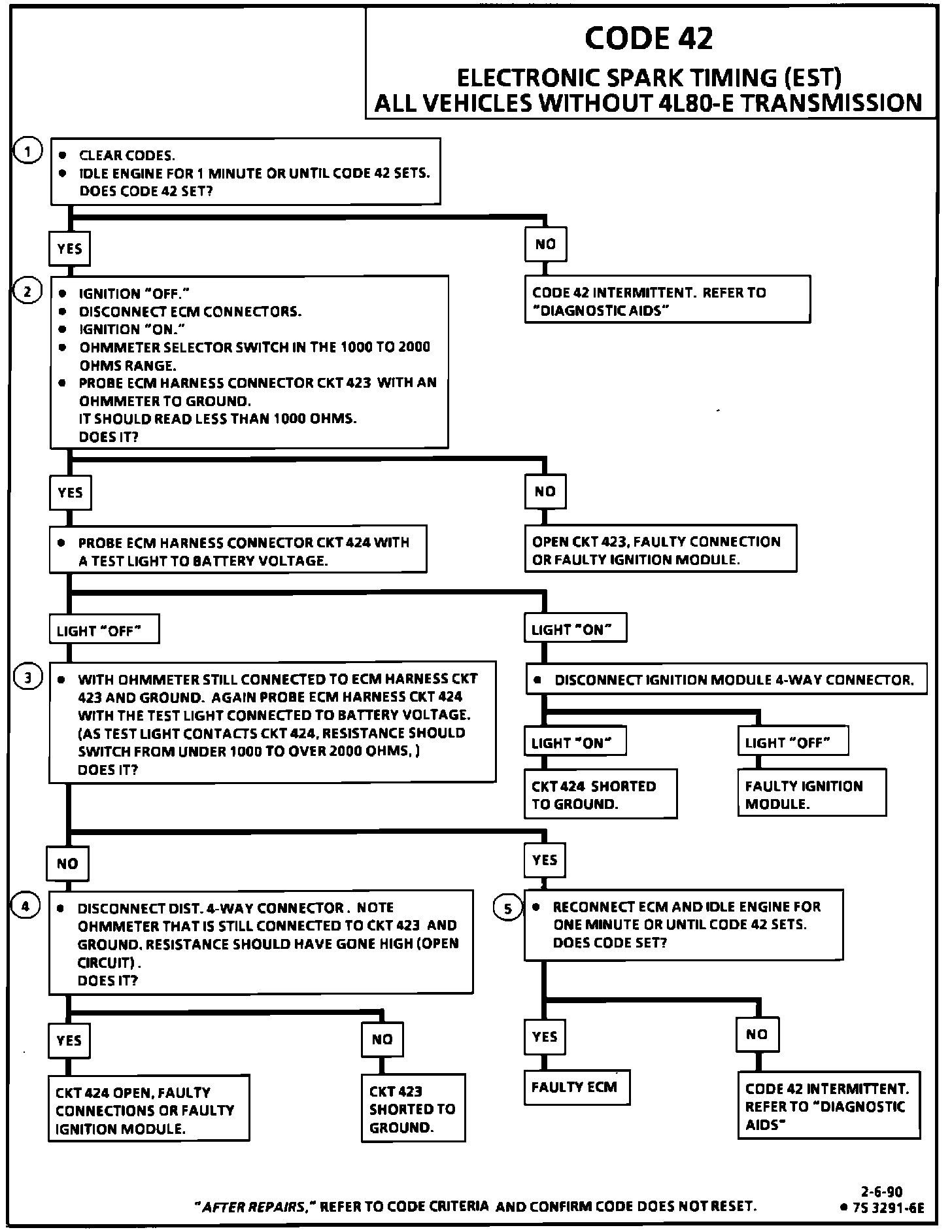 5. Confirms that Code 42 is a faulty ECM and not an intermittent in CKTs 423 or 424.