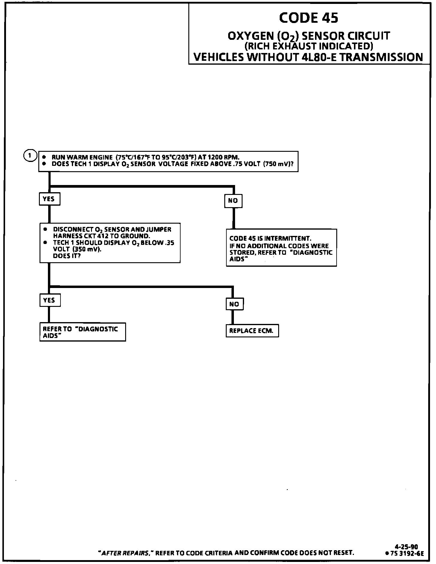 1. Code 45 is set when the Oxygen (02) sensor signal voltage or CKT 412: