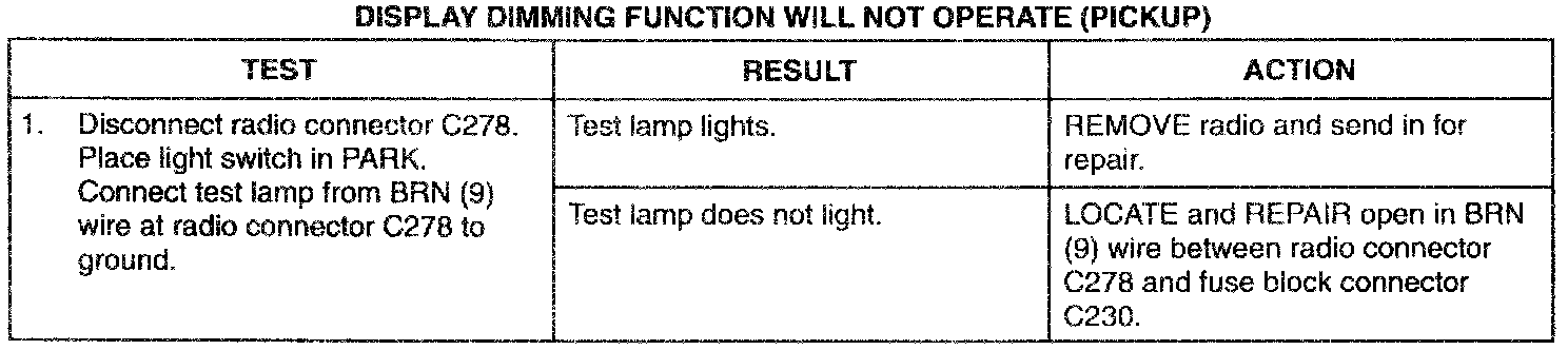 Display Dimming Function Will Not Operate (Pickup)