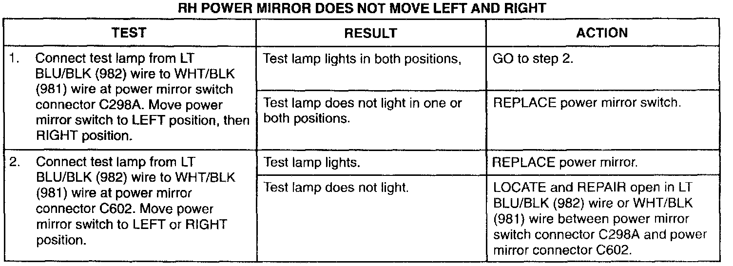RH Power Mirror Does Not Operate Left/Right