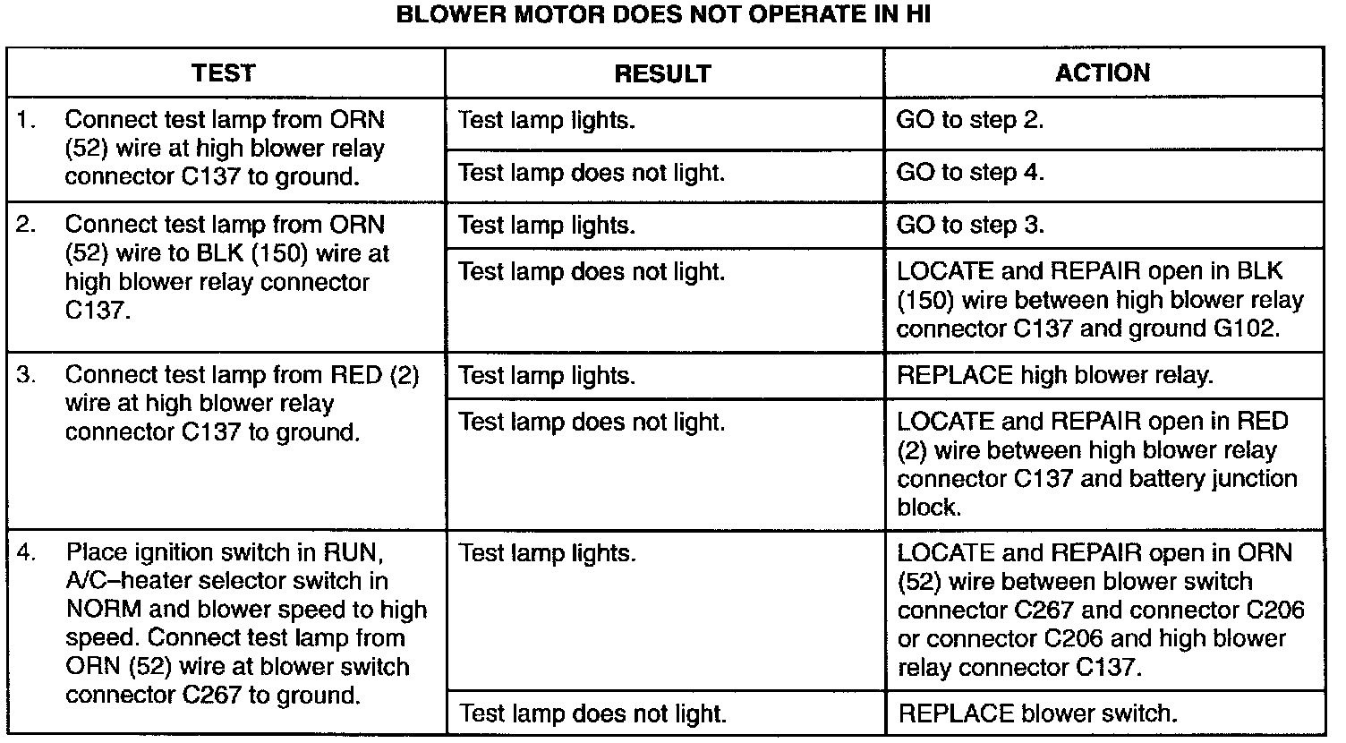 Blower Motor Does Not Operate In Hi