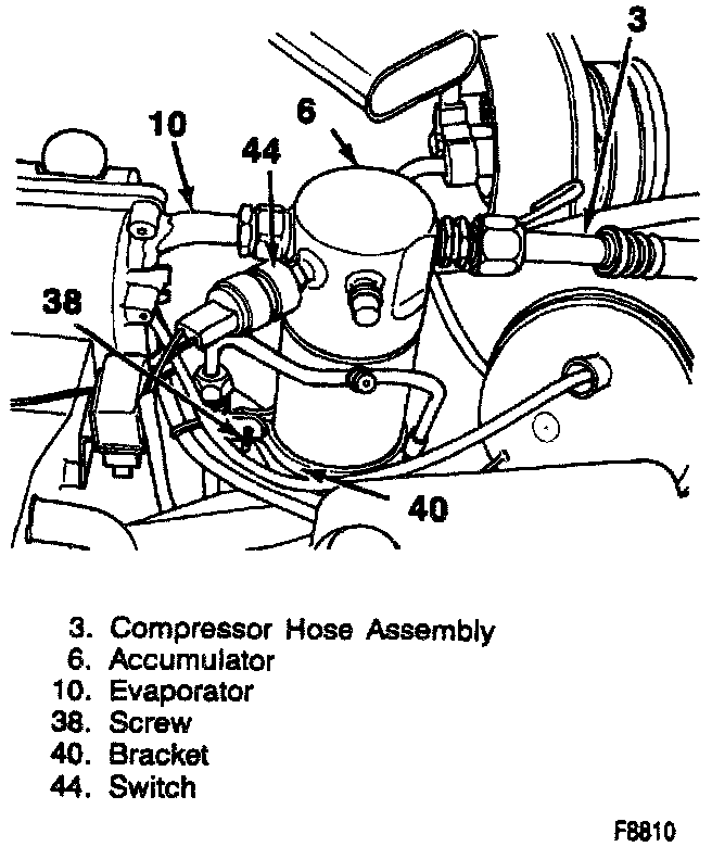 7. Compressor hose assembly (3) to accumulator.