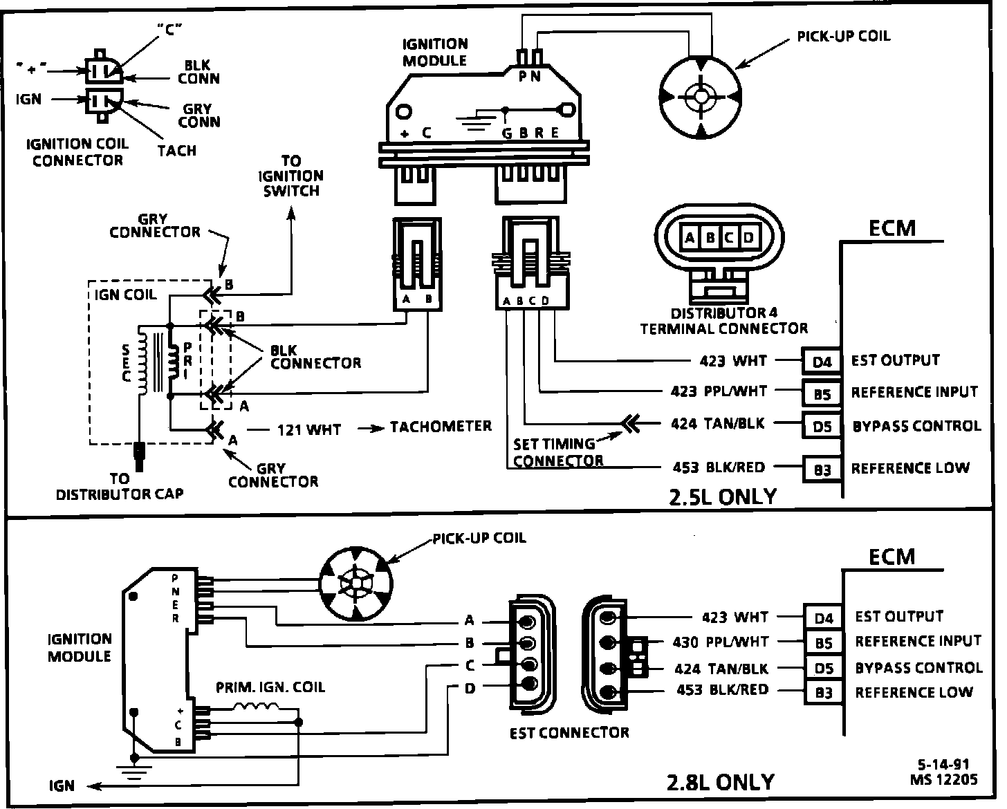 4. Checks for a shorted module or grounded circuit from the ignition coil to the module. The distributor module should be turned "OFF", so normal voltage should be about 12 volts. If the module is turned "ON", the voltage would be low, but above 1 volt. This could cause the ignition coil to fail from excessive heat. With an open ignition coil primary winding, a small amount of voltage will leak through the module from the "batt" to the "tach" terminal.