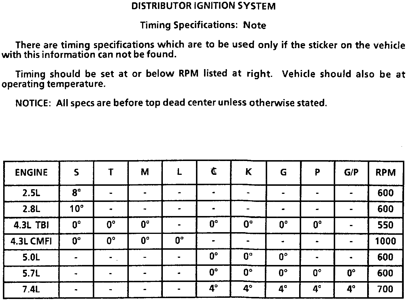 Ignition Timing: Specifications