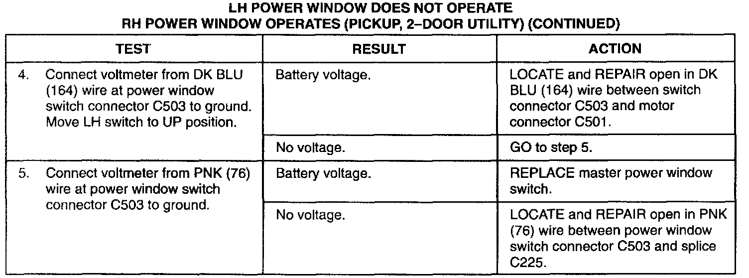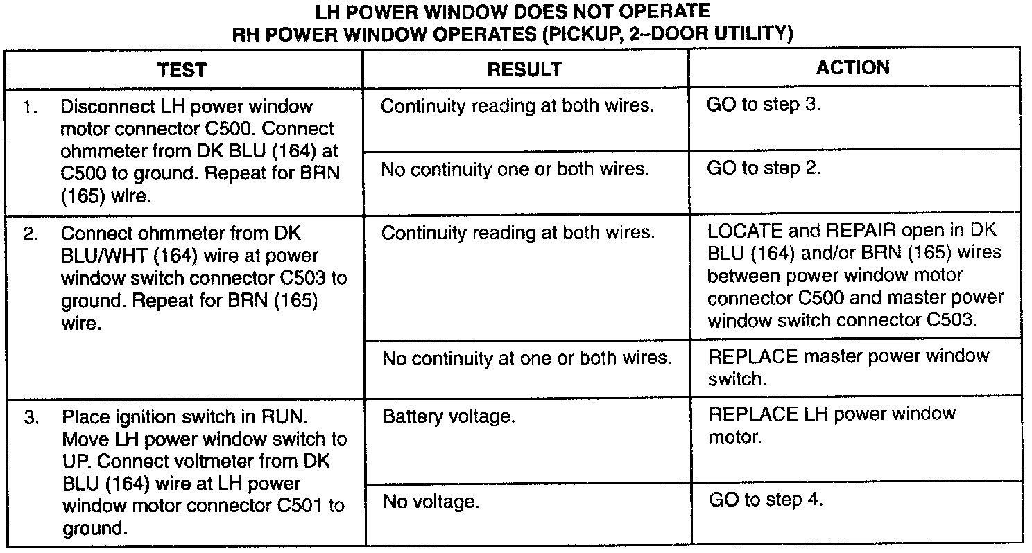 LH Window Inop, RH Operates Properly (Pickup, 2 Door Utility)