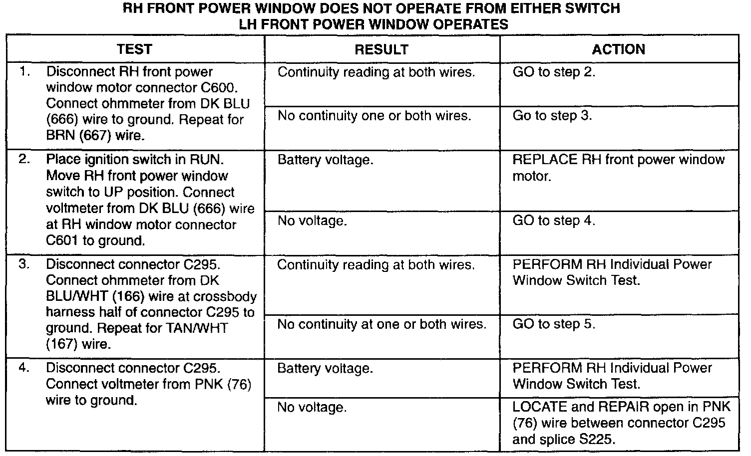 RH Front Window Inoperative From Either SW, LH OK